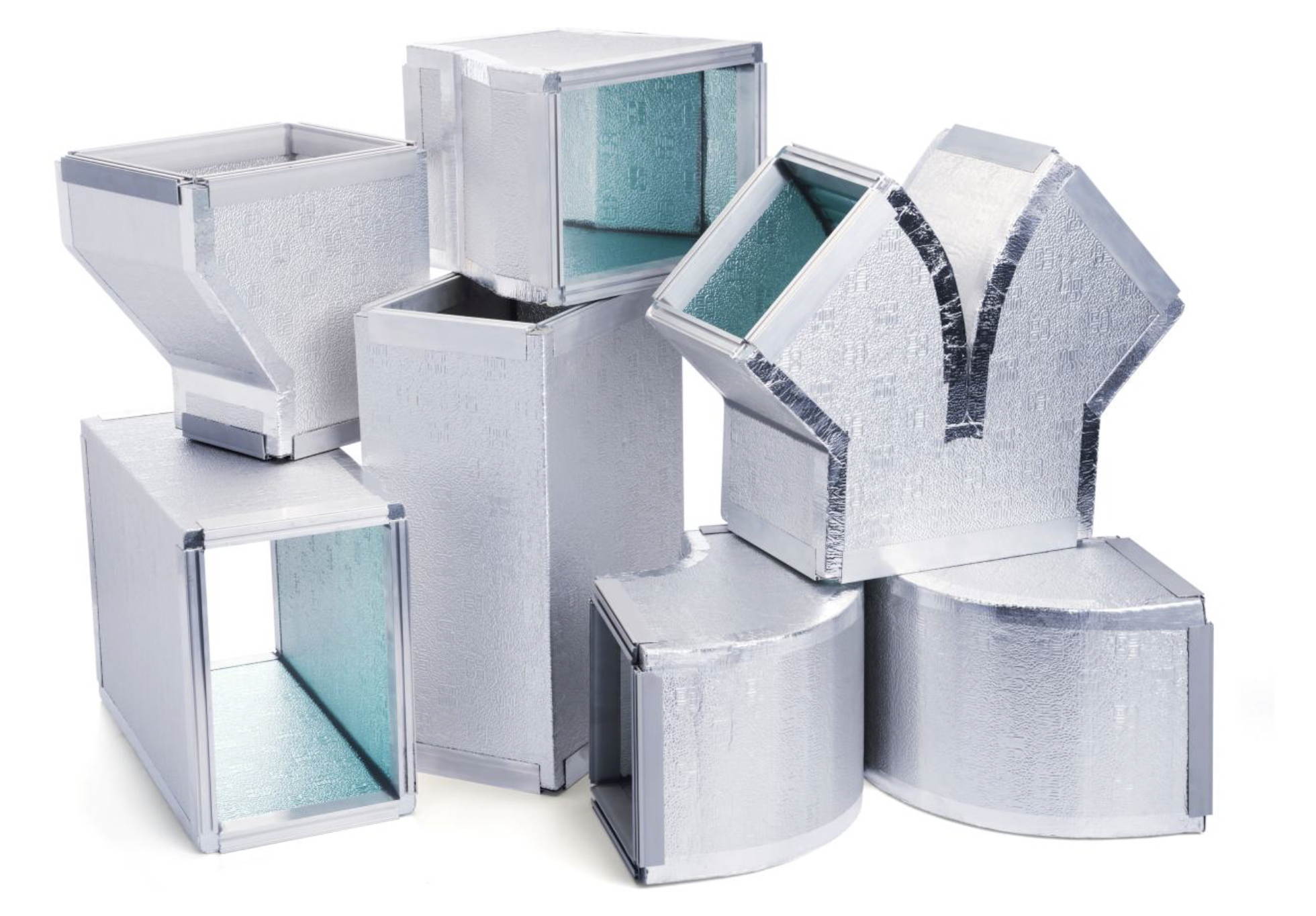 EASY PIR Ducting, also known as pre-insulated panel duct board, is made from polyisocyanurate (PIR) insulation foam, sandwiched between aluminum foil. This product is lightweight, rigid, and easy to work with.